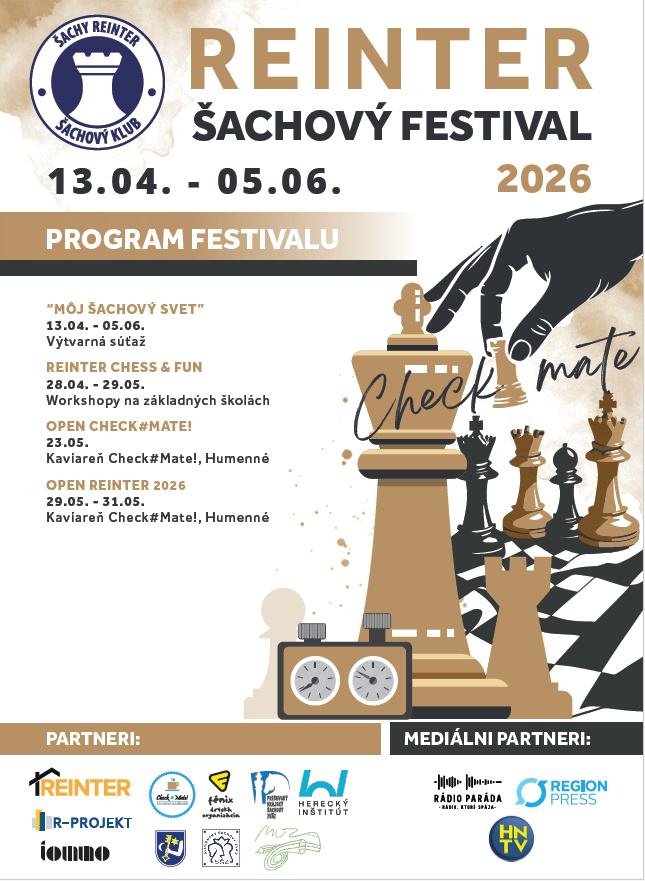 Šachy Reinter n.o. v spolupráci s generálnymi partnermi Reinter s.r.o. a Detskou organizáciou Fénix Humenné - Šachy organizujú III. ročník Reinter šachového festivalu 2026